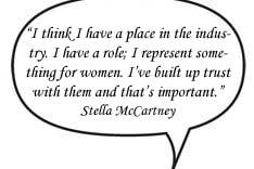 “我相信我在行业中占有一席之位,我有我自己的角色;我代表着女性身上的某种特质,我们互相信赖而这一点也非常重要。”— Stella McCartney